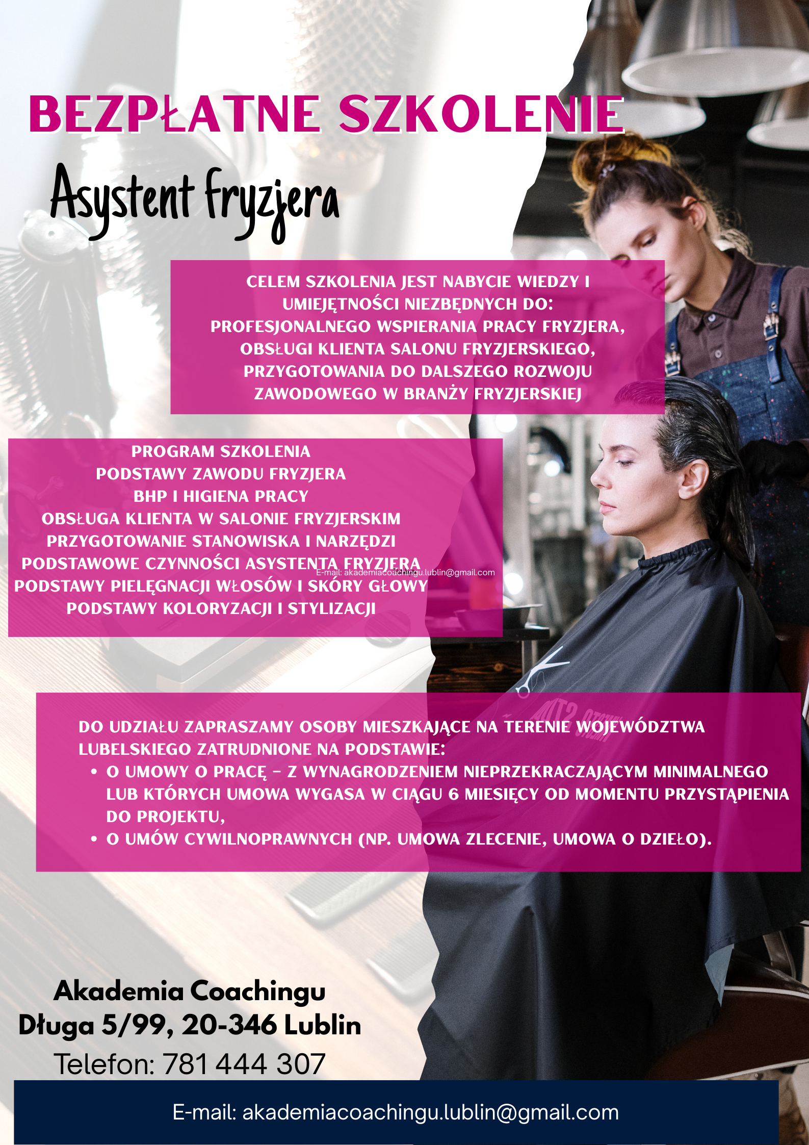 Akademia Coachingu prowadzi rekrutację na szkolenie ASYSTENT FRYZJERA:
